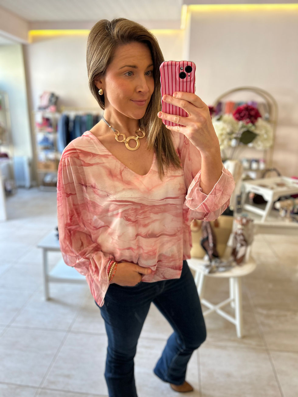 Marble Tie Back Top - Pink