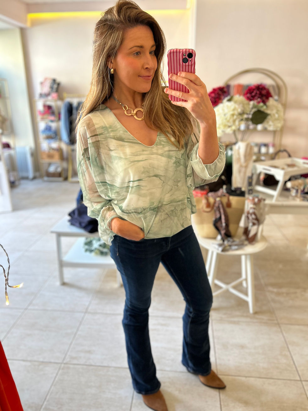Marble Tie Back Top - Green